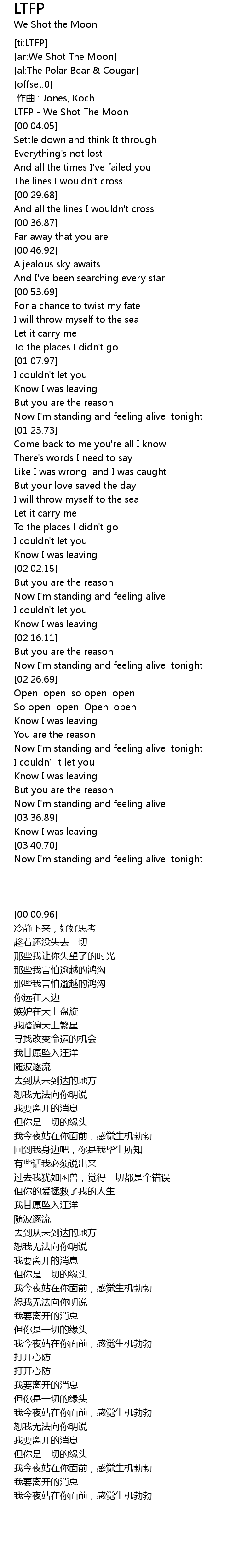 | [00:00.96] | LTFP - We Shot The Moon |