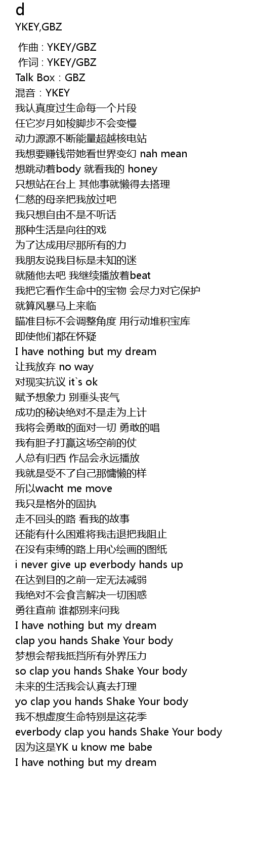 | [00:01.000] | 作词 : YKEY/GBZ |