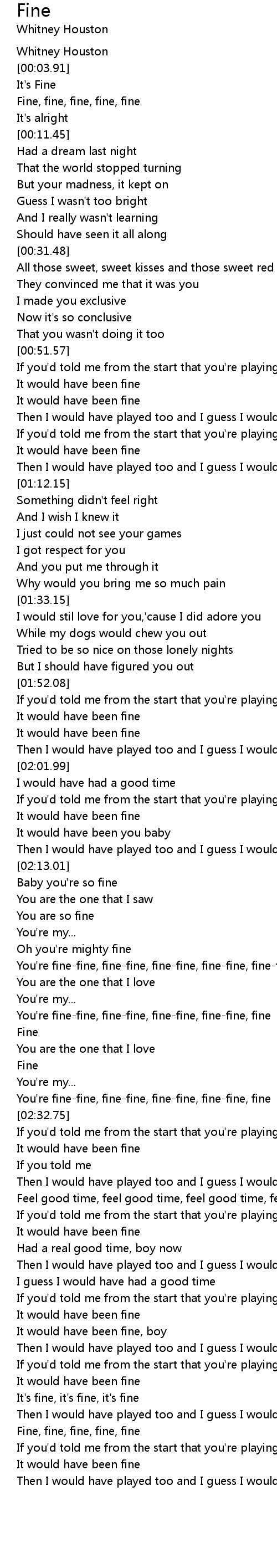 You're fine-fine, fine-fine, fine-fine, fine-fine, fine |