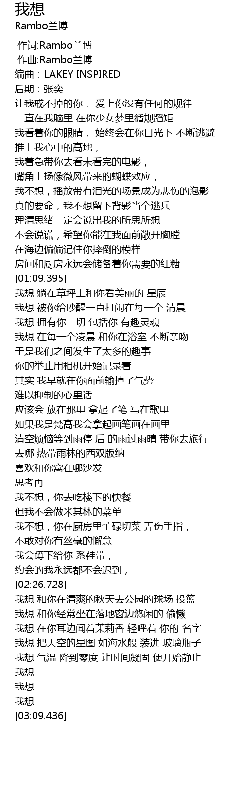 | [00:01.000] | 作词:Rambo兰博 |