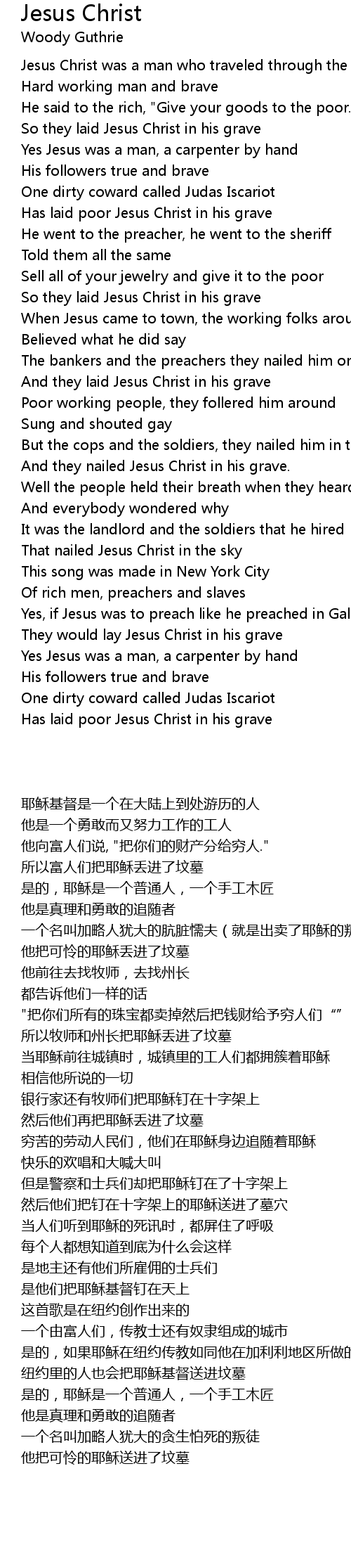 The bankers and the preachers they nailed him on a cross |