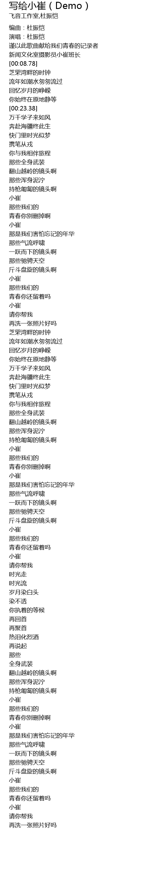 | [00:05.99] | 谨以此歌曲献给我们青春的记录者 |