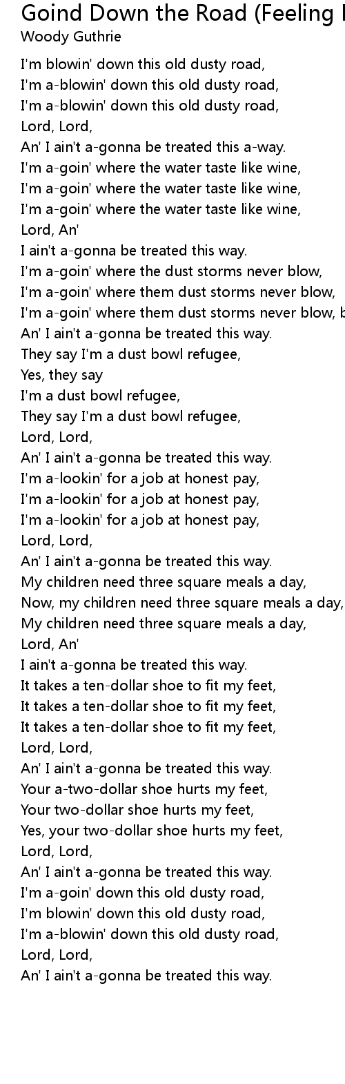 I'm a-goin' where them dust storms never blow, blow, blow, |