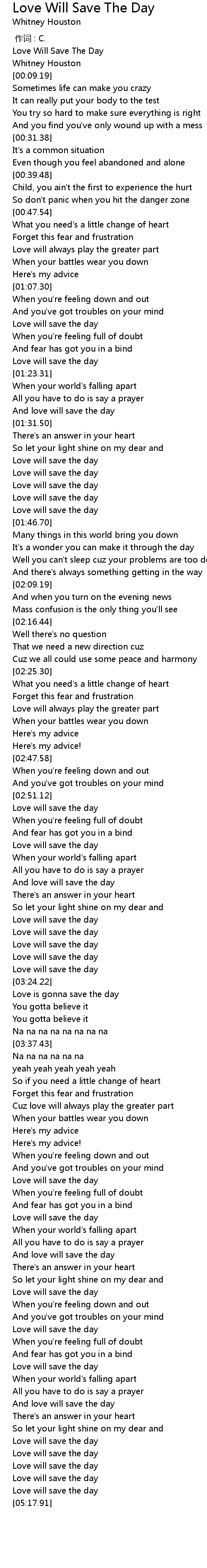 | [03:18.95] | Love will save the day |