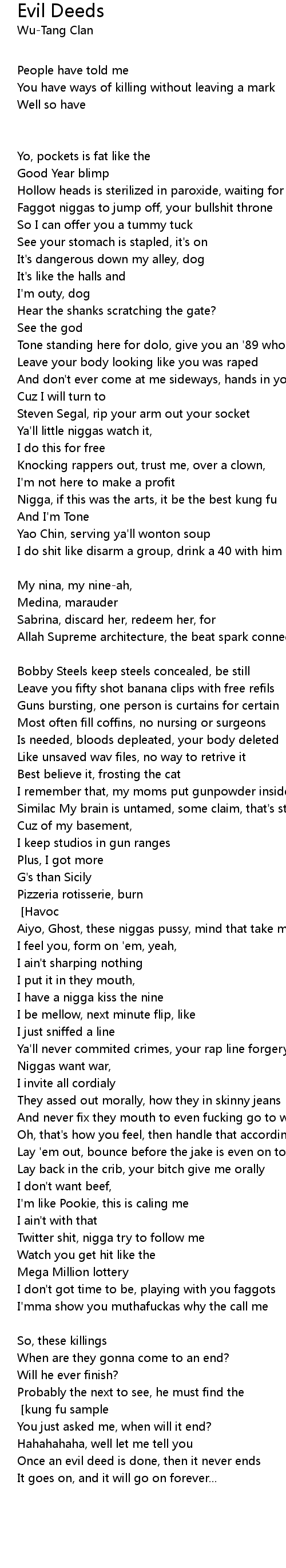 Once an evil deed is done, then it never ends |
