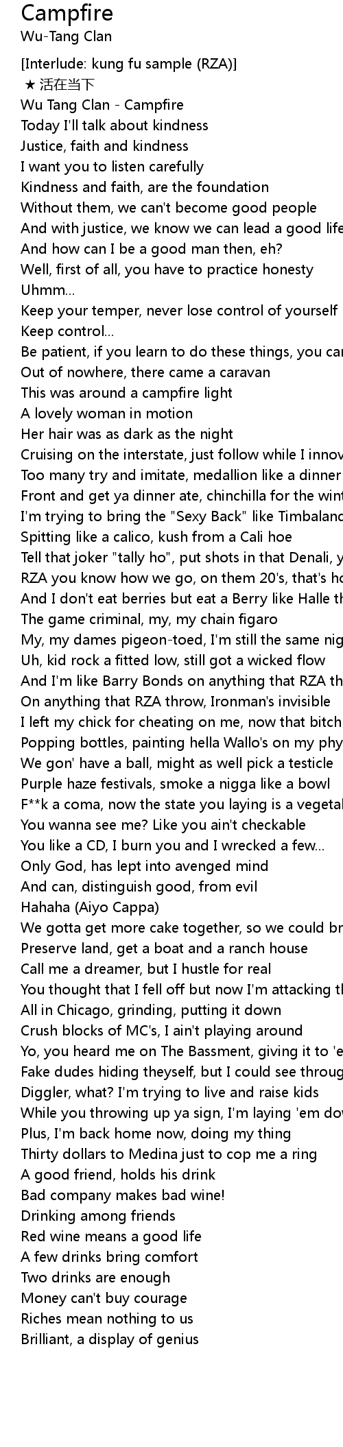 | [00:01.23] | Wu Tang Clan Campfire |
