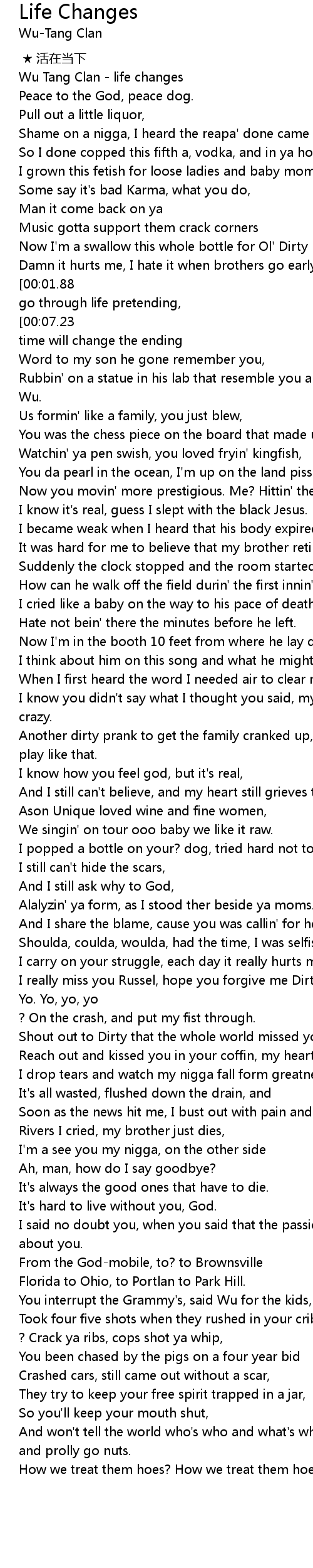 | [06:11.23] | Wu Tang Clan - life changes |