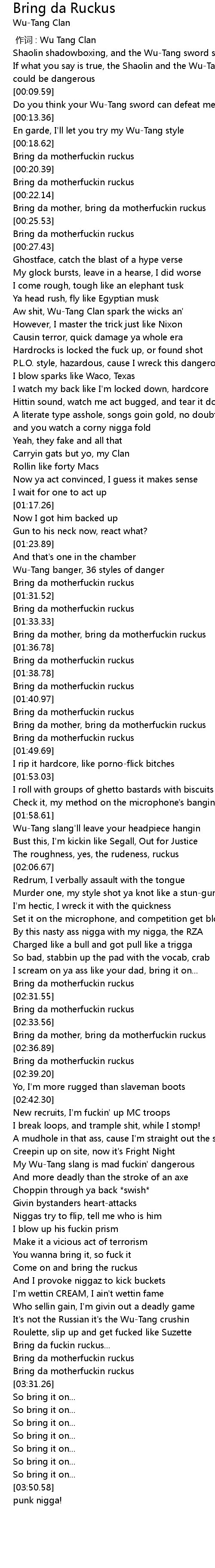 | [02:53.70] | My WuTang slang is mad fuckin' dangerous |