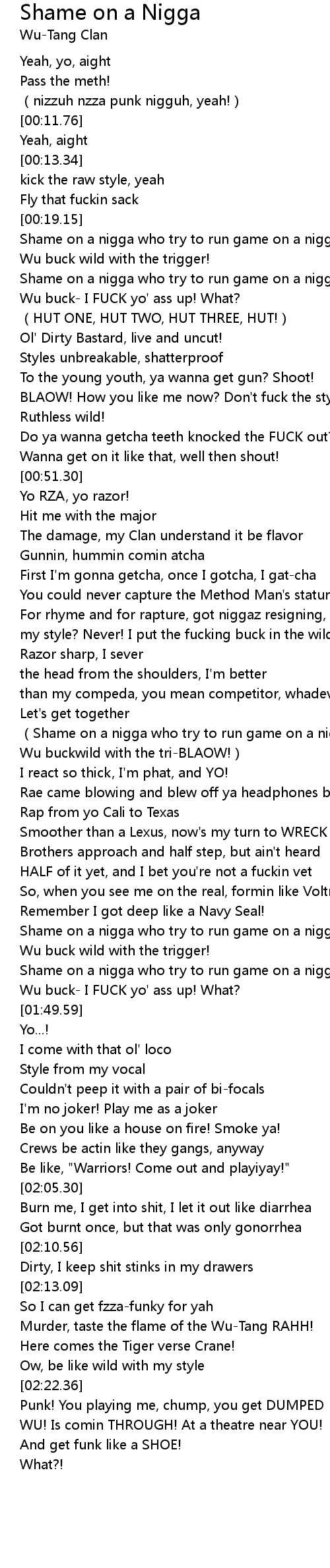 | [00:20.71] | Shame on a nigga who try to run game on a nigga |