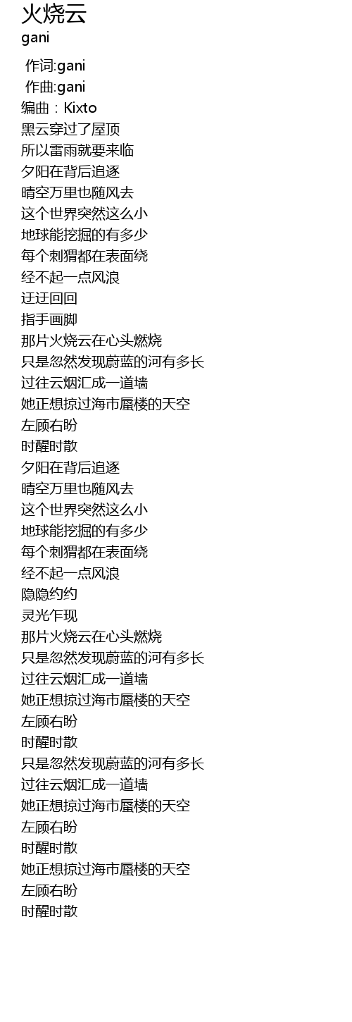 | [02:29.953] | 那片火烧云在心头燃烧 |