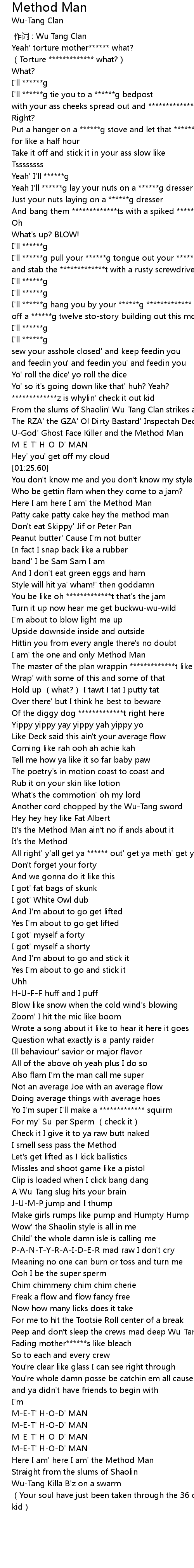 | [04:25.32] | Peep and don't sleep the crews mad deep Wu-Tang |