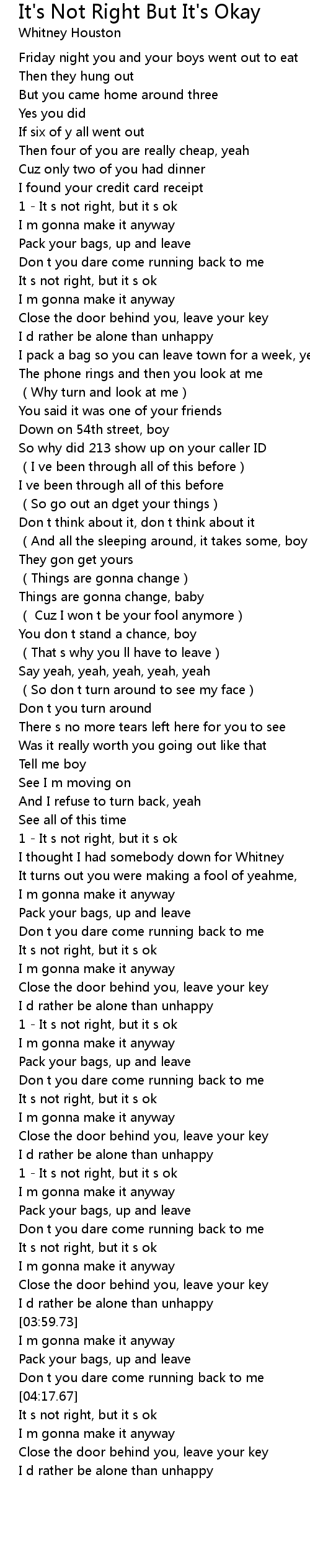 | [03:38.73] | 1 - It s not right, but it s ok |