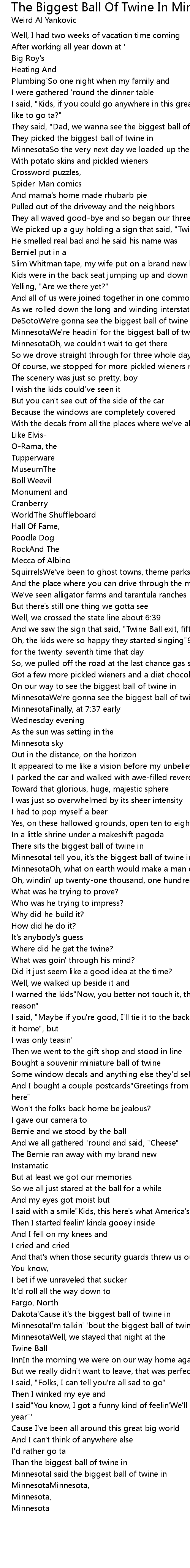 They said, "Dad, we wanna see the biggest ball of twine in Minnesota" |