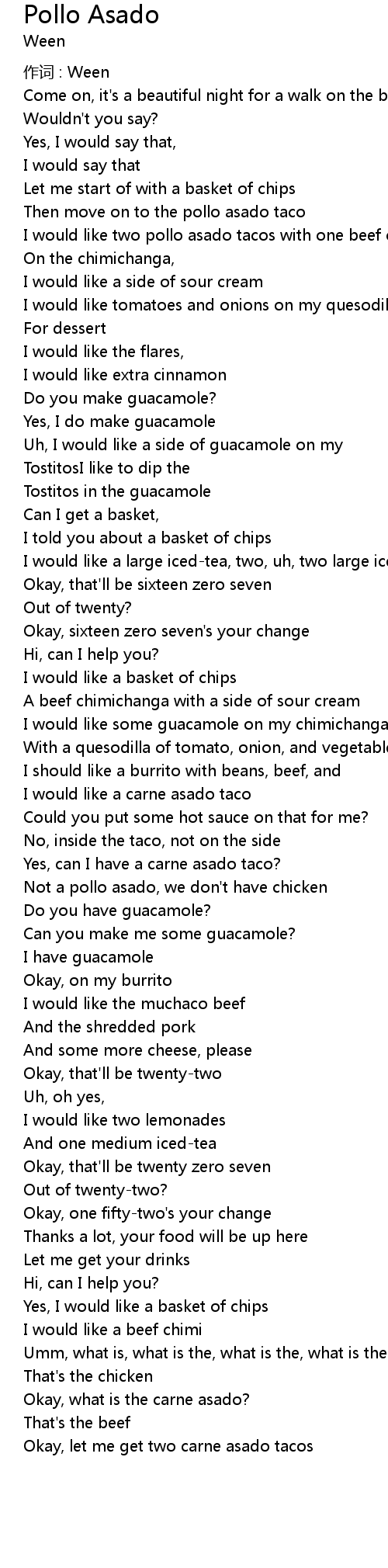 | Umm, what is, what is the, what is the, what is the pollo asado? | |