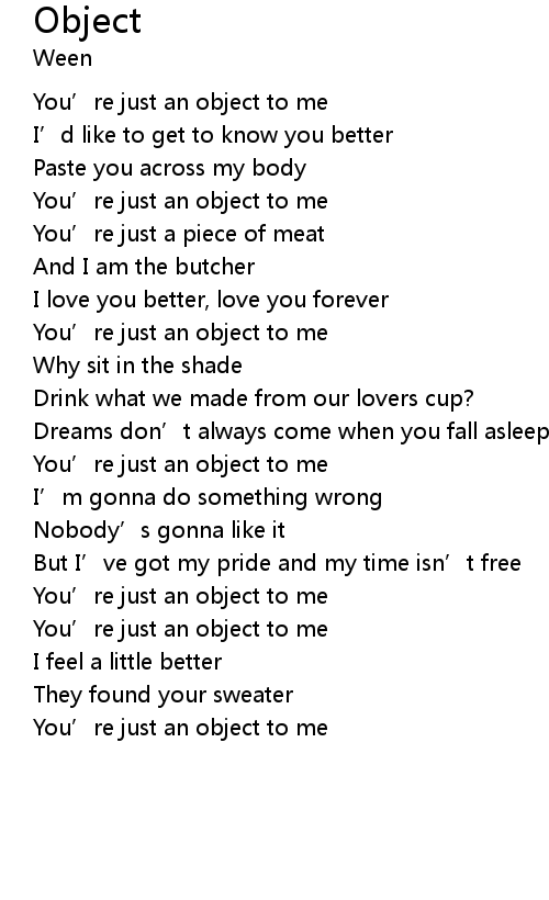 | You' re just an object to me | |