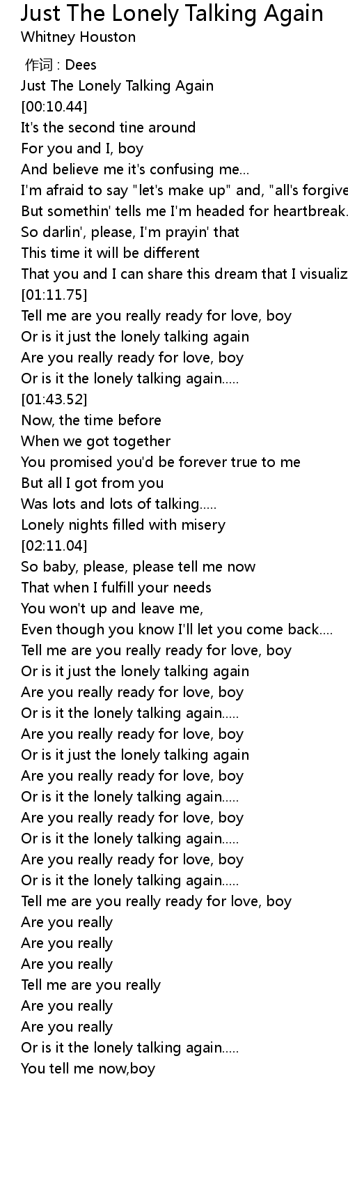 | [00:45.08] | So darlin', please, I' m prayin' that |