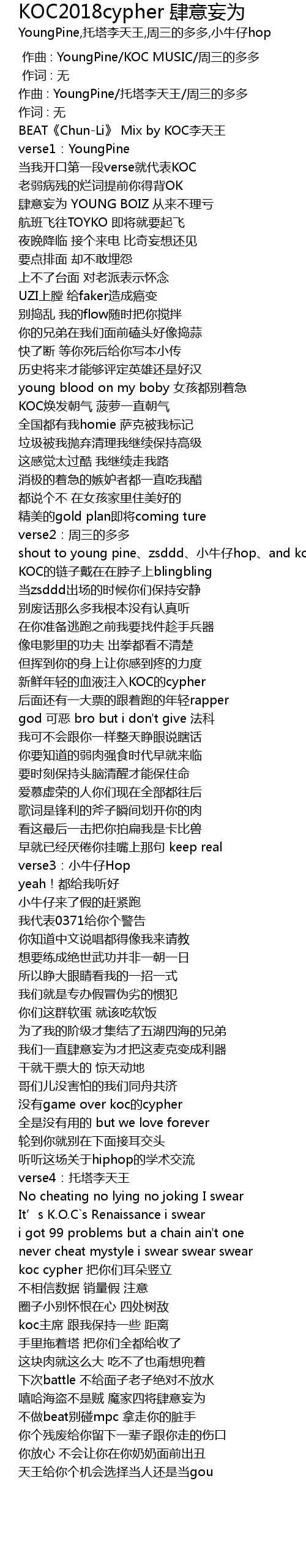 | [02:58.847] | koc cypher 把你们耳朵竖立 |