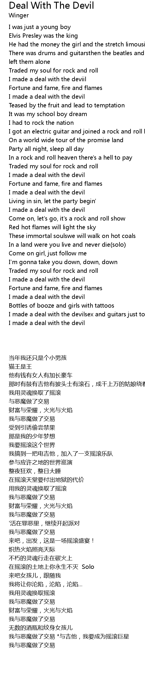 | I made a deal with the deviil | |