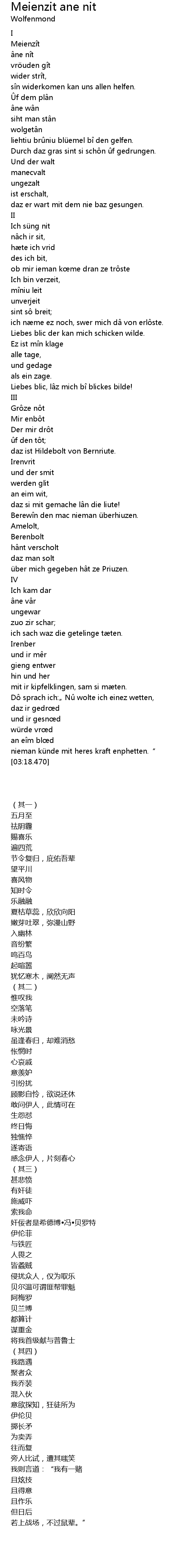 | [03:05.180] | Dô sprach ich:„ Nû wolte ich einez wetten, |