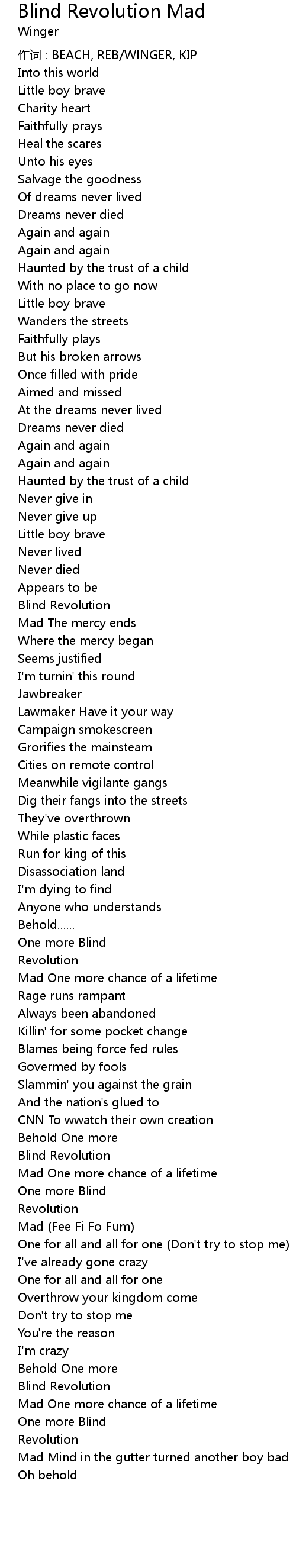 | 作词 : BEACH, REB/WINGER, KIP | |
