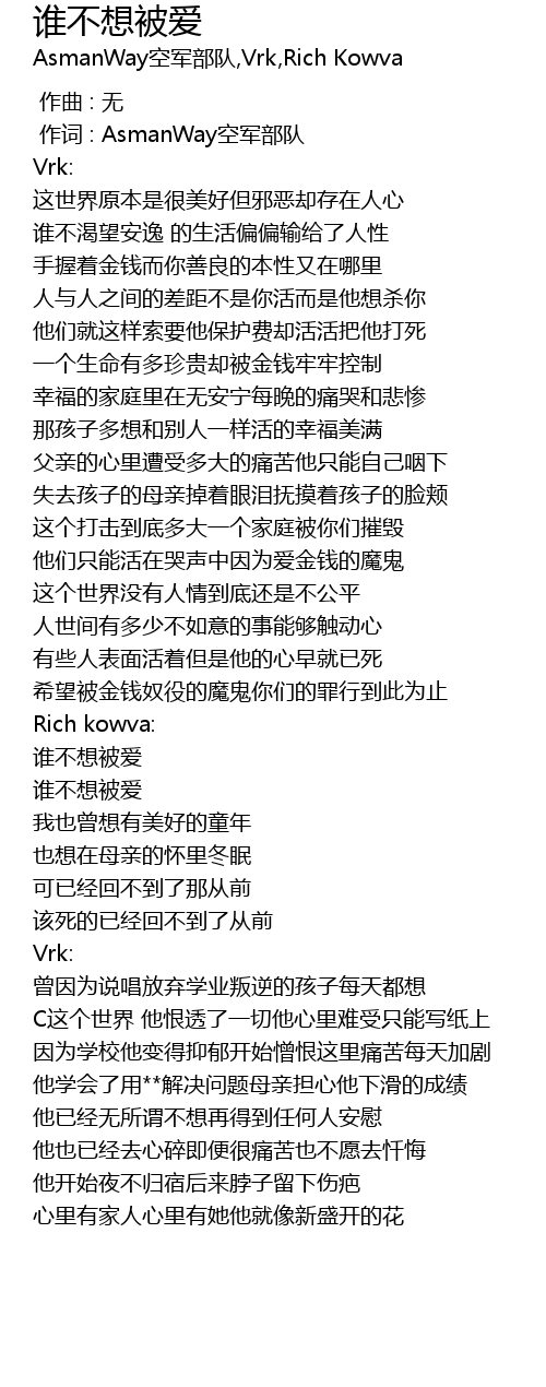 | [00:01.000] | 作词 : AsmanWay空军部队 |
