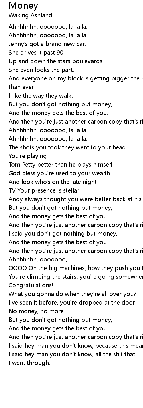 But you don't got nothing but money, |