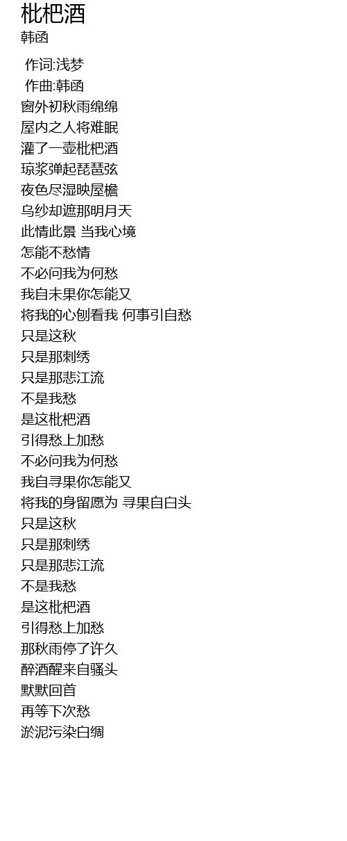 | [00:23.000] | 灌了一壶枇杷酒 |