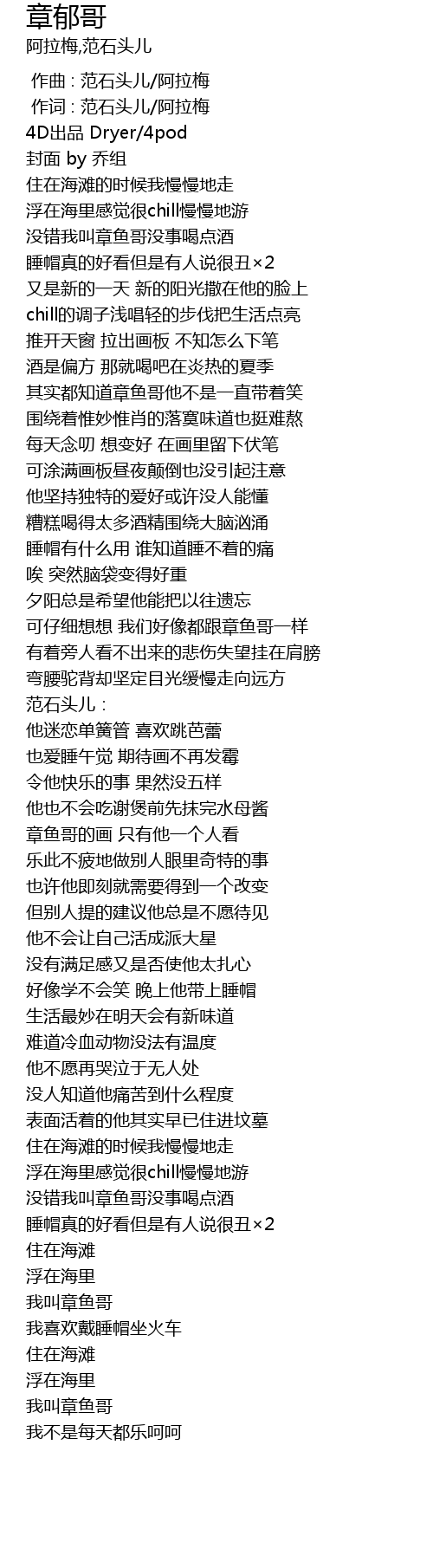 | [01:59.76] | 章鱼哥的画 只有他一个人看 |
