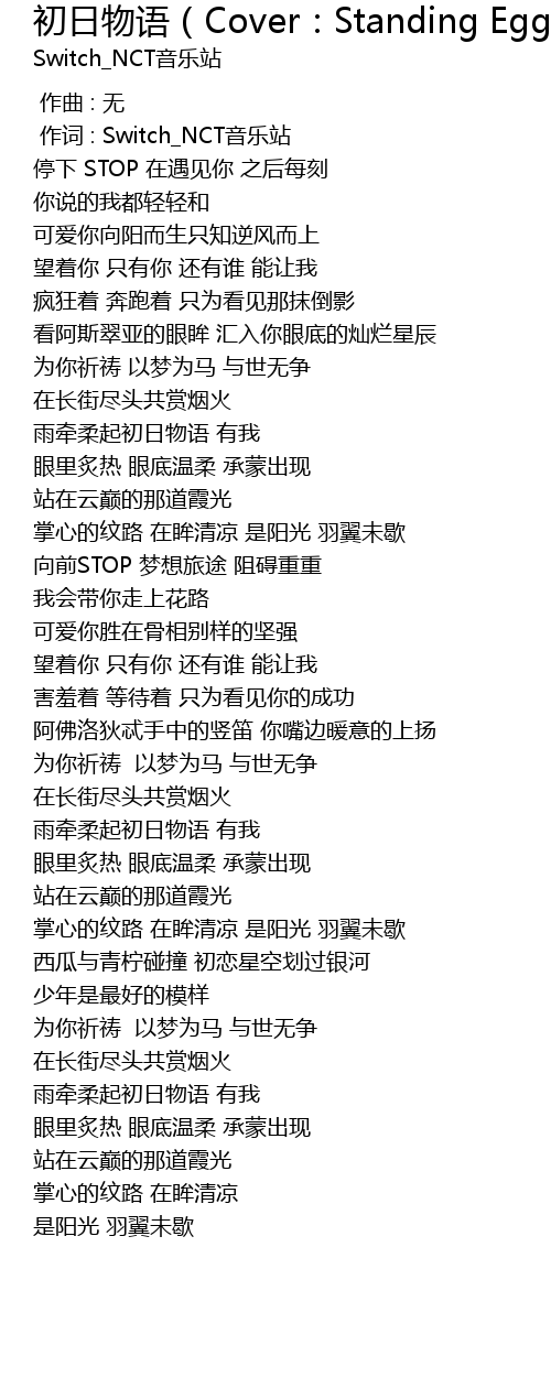 | [00:01.000] | 作词 : Switch_NCT音乐站 |