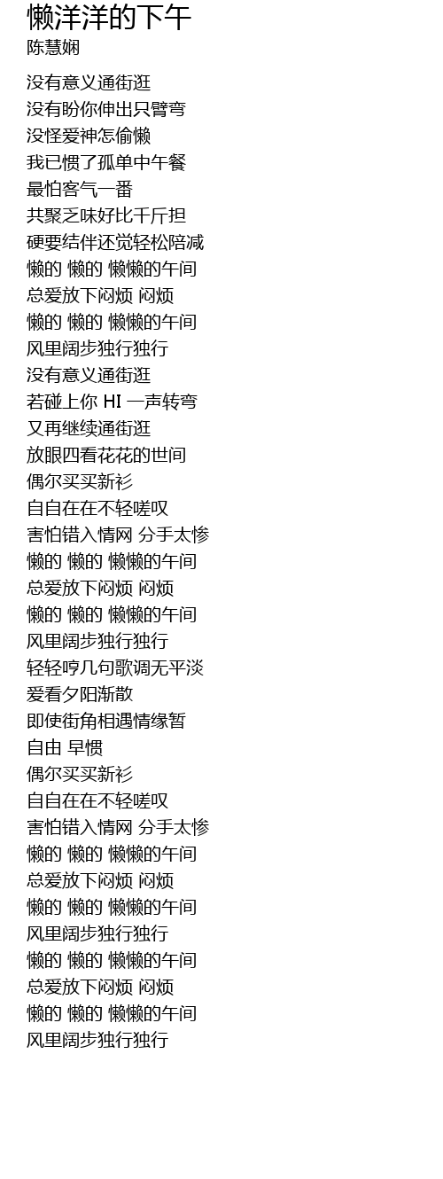 | [02:22.19] | 懒的 懒的 懒懒的午间 |