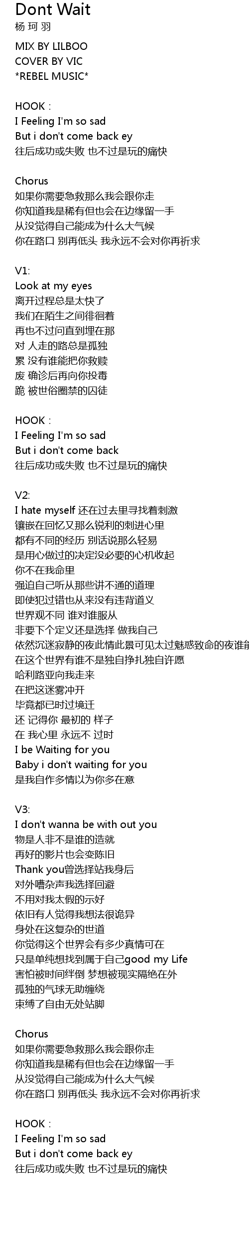 | [00:06.27] | COVER BY VIC |