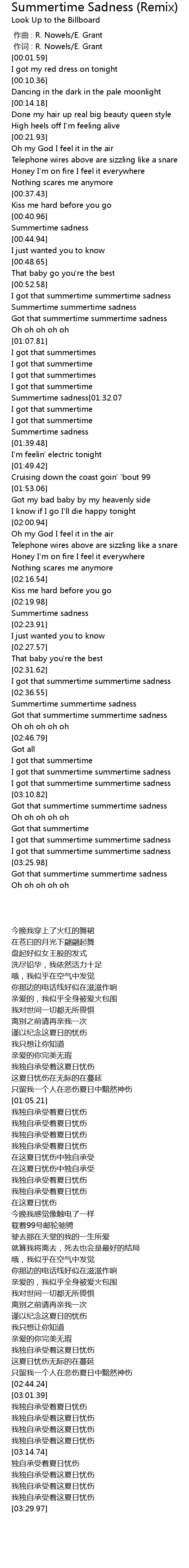 | [03:03.51] | I got that summertime summertime sadness |