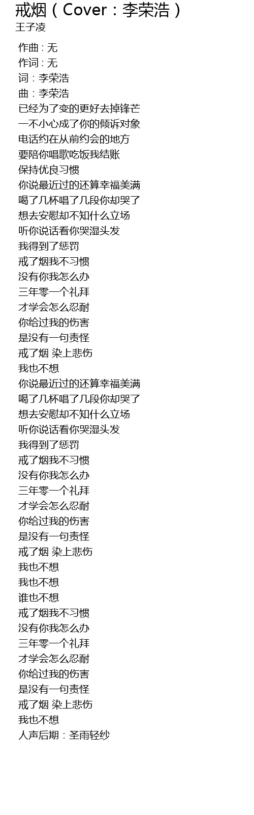 | [03:42.76] | jiè le yān wǒ bù xí guàn |