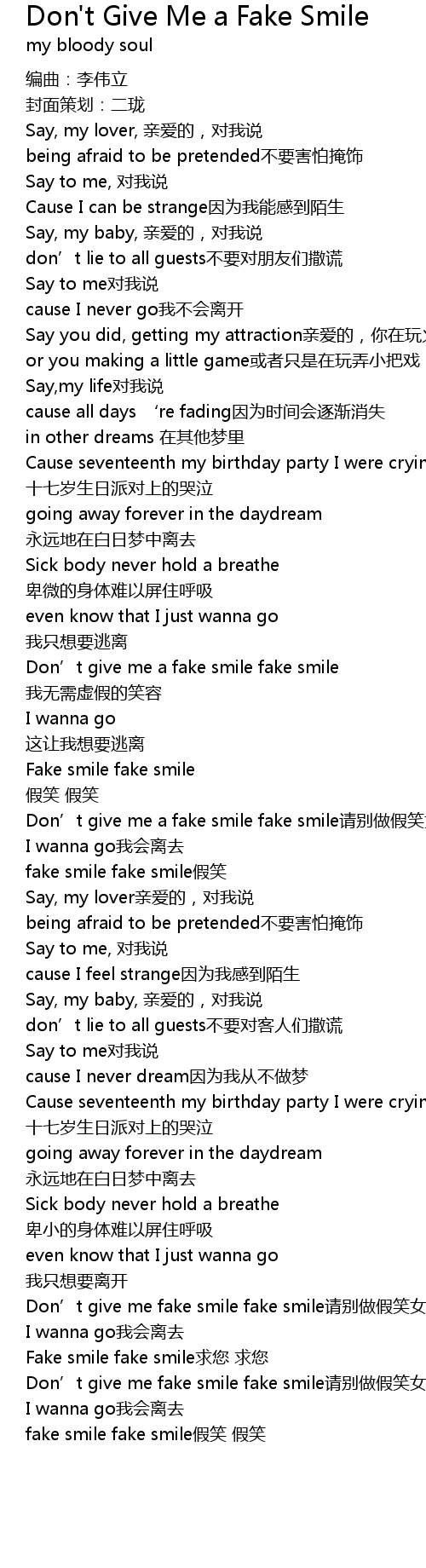 | [02:50.28] | Fake smile fake smile求您 求您 |