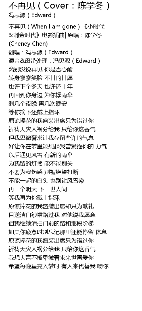 | [00:06.892] | 翻唱:冯思源(Edward) |