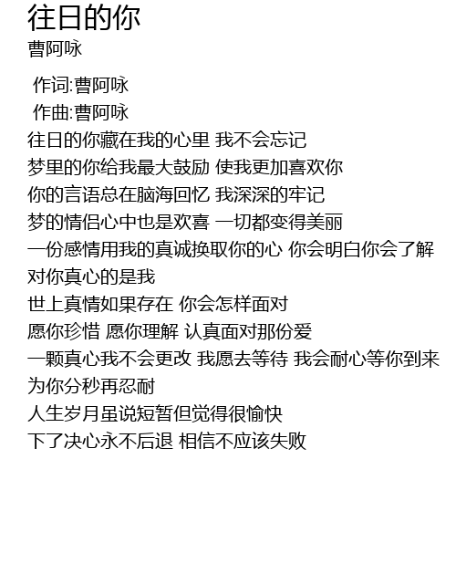 | [00:15.159] | wang ri de ni cang zai wo de xin li wo bu hui wang ji |