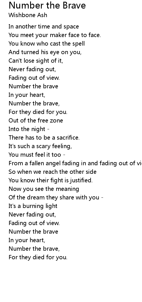 Number the Brave Lyrics