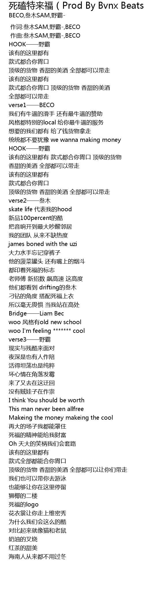 | [00:01.000] | 作词:叁木SAM,野霸-,BECO |