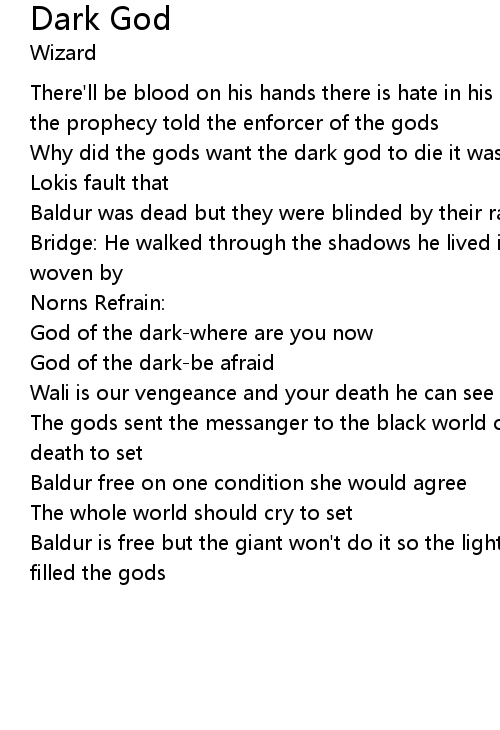 | Why did the gods want the dark god to die it was | |