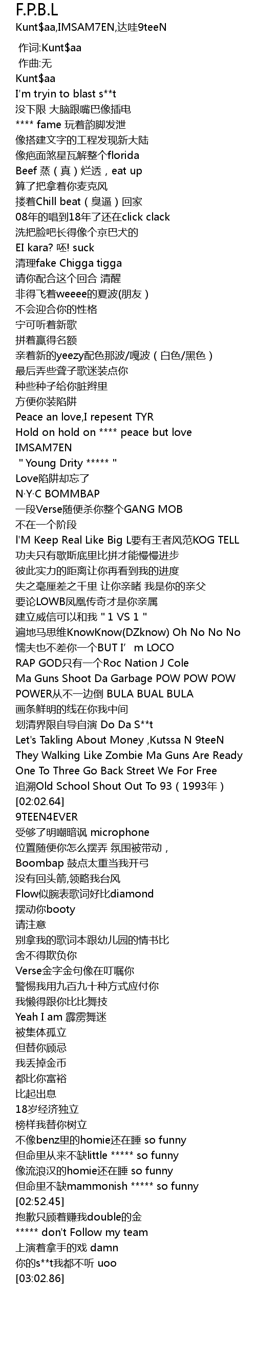 | [02:44.58] | 但命里从来不缺little ***** so funny |