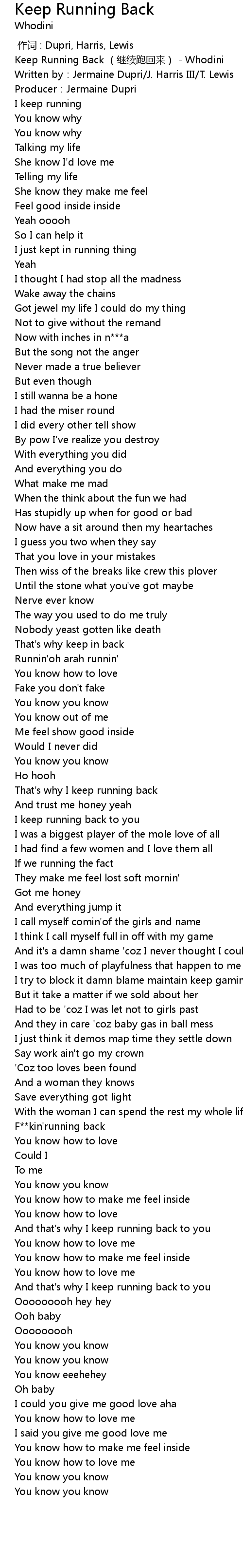 | [00:00.10] | Keep Running Back jì xù pǎo huí lái Whodini |