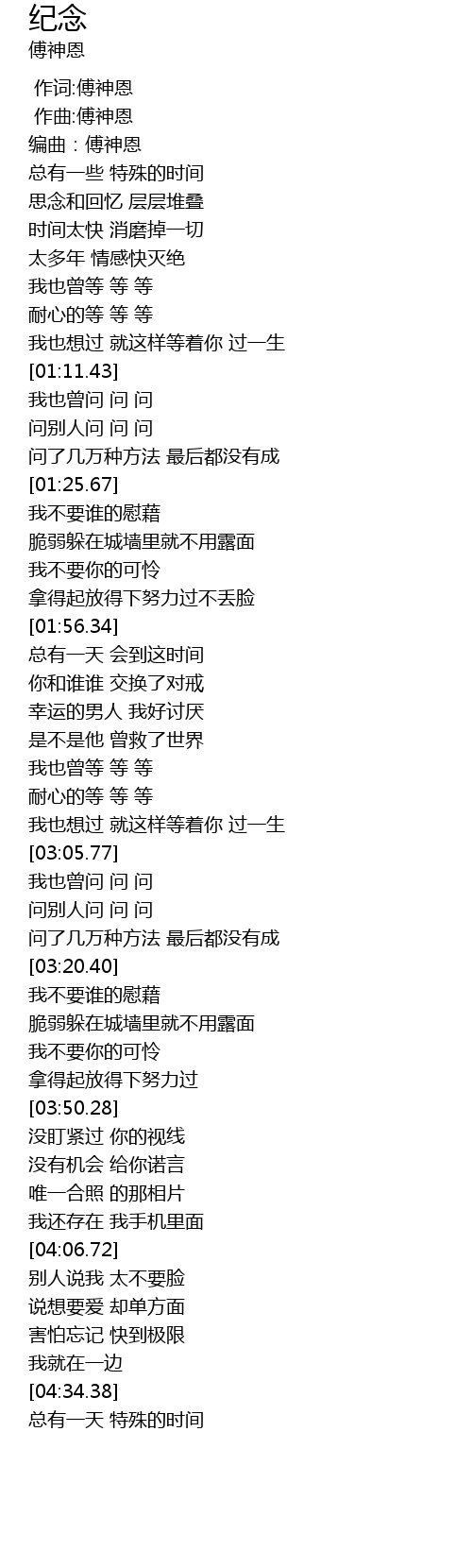 | [04:34.88] | zong you yi tian te shu de shi jian |