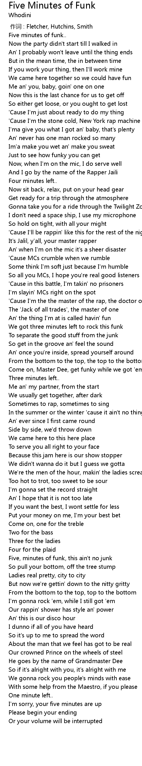 | [03:02.64] | Five, minutes of funk, this ain't no junk |