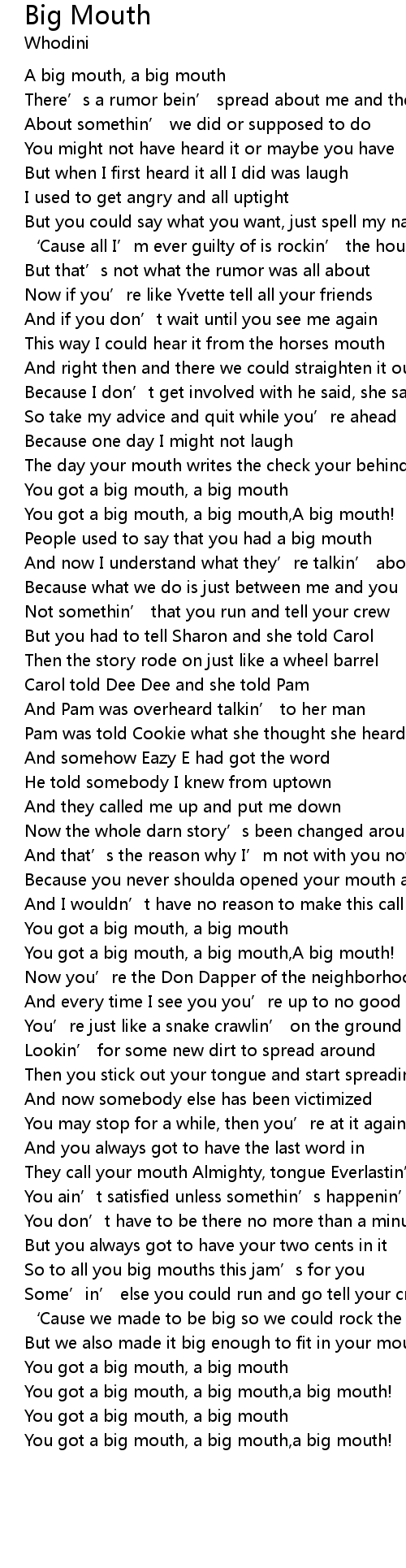 | [00:53.58] | You got a big mouth, a big mouth,A big mouth! |