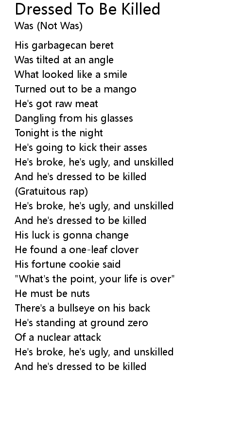Dressed To Be Killed Lyrics