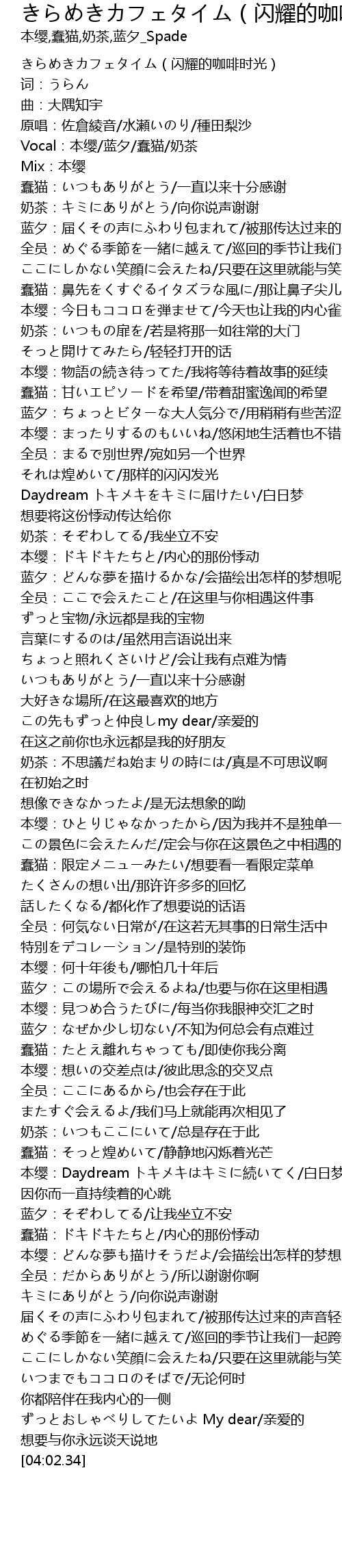 | [00:00.83] | きらめきカフェタイム(闪耀的咖啡时光) |