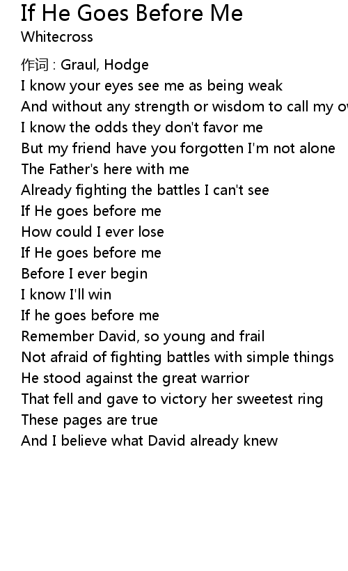 | Song | If He Goes Before Me |