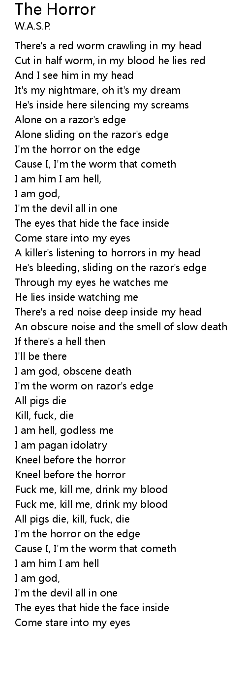 | Cut in half worm, in my blood he lies red | |