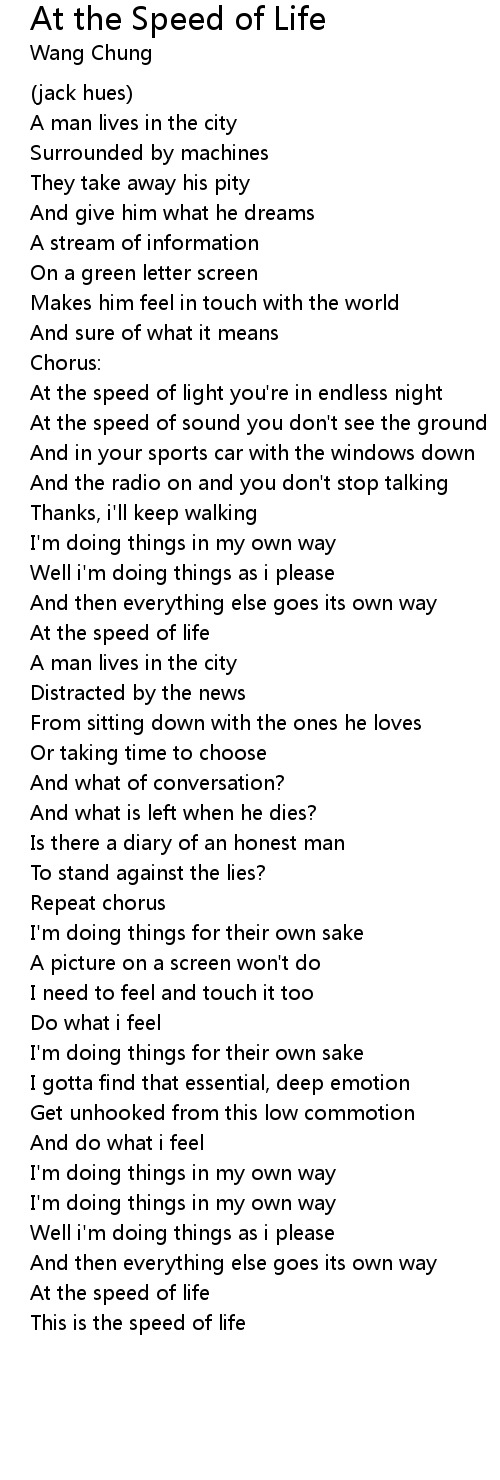 At the speed of life |