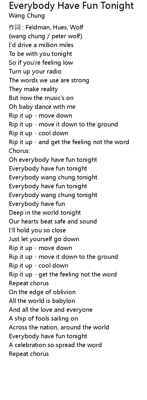 | Everybody wang chung tonight | |